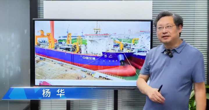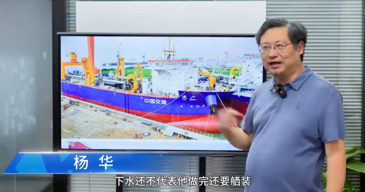 所以用这两艘船如果去吹沙填岛,效率、时间和整个的工程总量又会上一个台阶的。当然下水还不代表做完还要舾装,还要海试,估计是到今年年底可以海试,离明年交付使用也不远了。